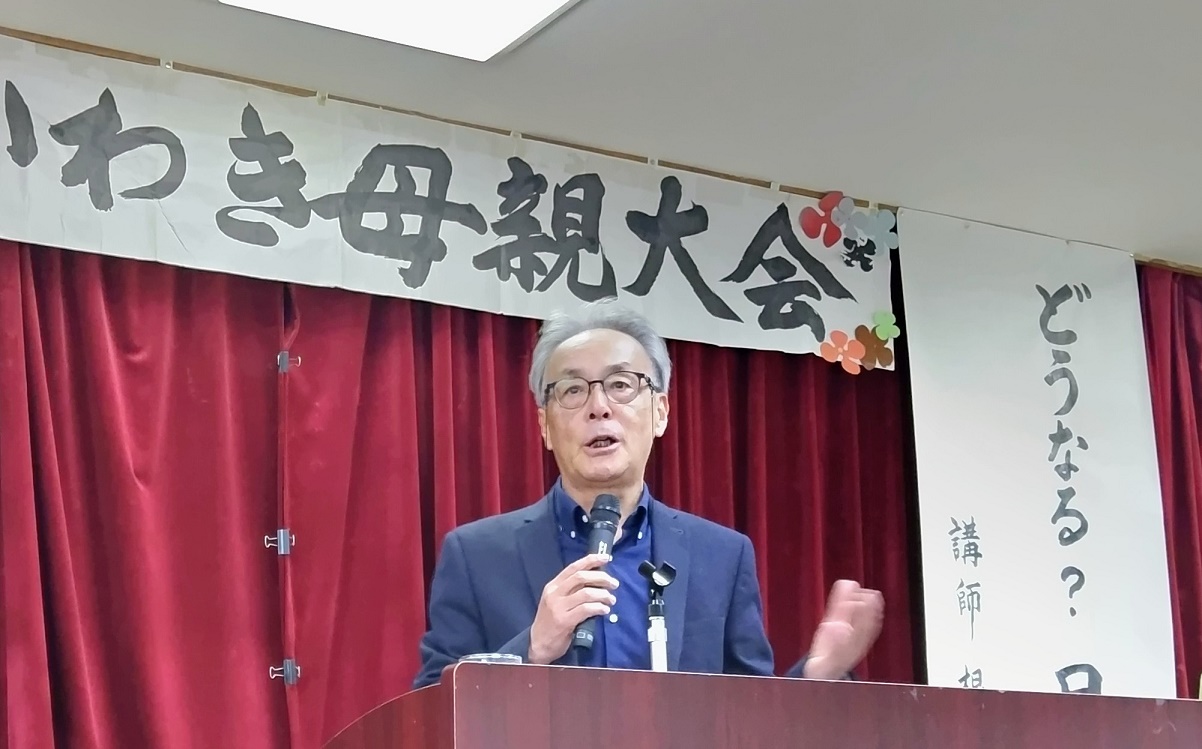 16日、第54回いわき母親大会講演会「日本の食糧事情と私たちにできることは」の講演を聞きました。講師は福島県農民連会長・根本敬さん。