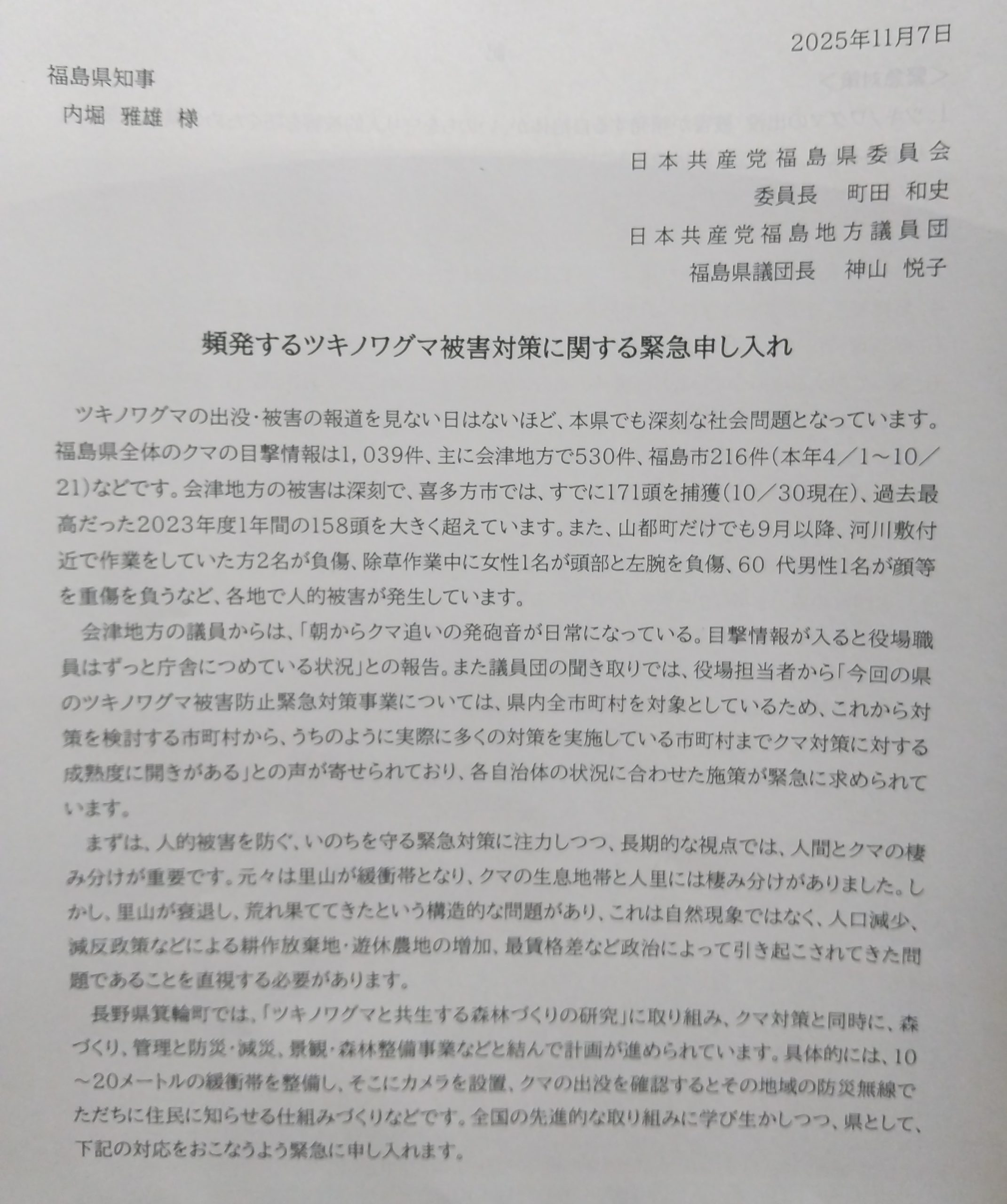 日本共産党の菅野市議は、10月定例市議会の一般質問で、跨線人道橋を整備する内郷駅や、エレベーター設置の要望が強い勿来駅に、四ツ倉駅のような西口改札(反対側改札)の整備を検討できないかと質問しました。都市建設部長は、鉄道駅のバリアフリーは国の方針に基づき、1日当たり平均利用者3千人以上の駅で実施している。しかし、対象外の駅などの対応も重要な課題と認識している。県と関係市町村で構成する「県鉄道活性化対策協議会」などと連携して、JRに対して適宜要望していくと答弁しました。