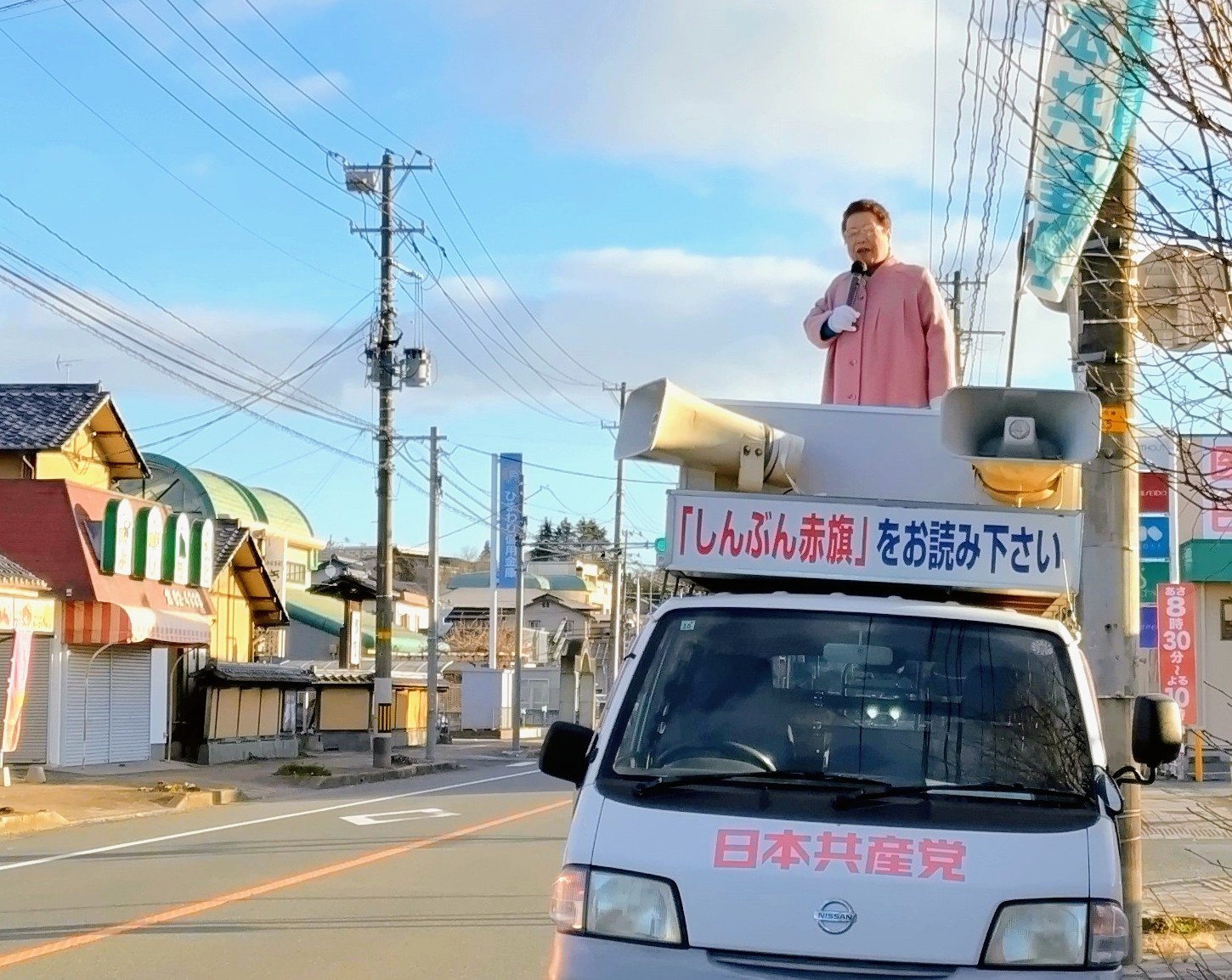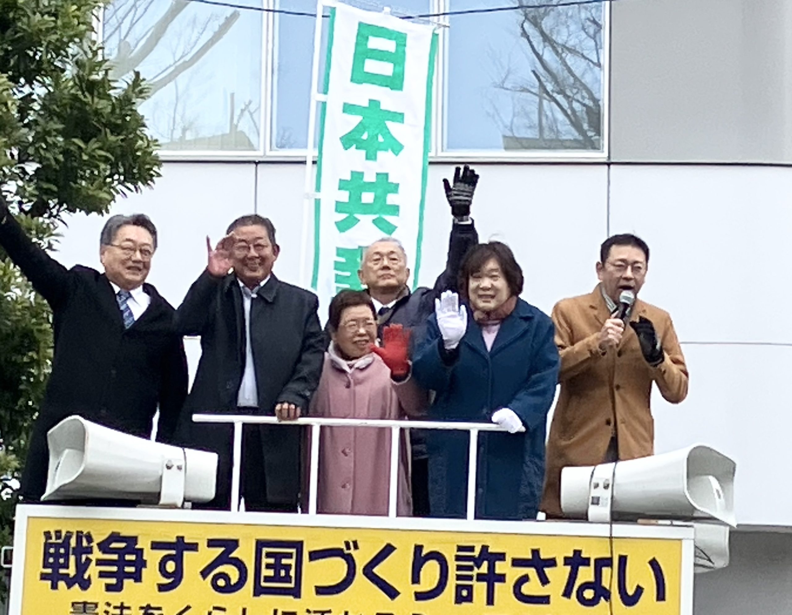 日本共産党いわき双葉地区委員会新春初街宣、いわき駅前・好間・常磐・勿来・小名浜で