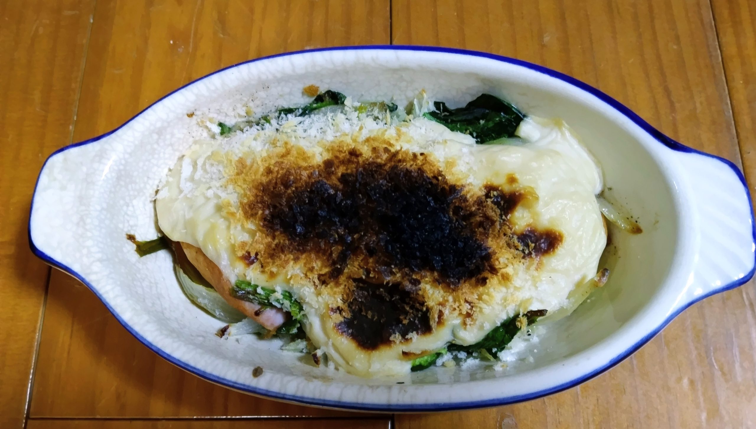 私が作ったお雑煮。大鍋いっぱいがすぐなくなった。人参・大根・しみ豆腐・シイタケ・鶏肉・せり・なると・かまぼこ。ごぼう入れるの忘れた。