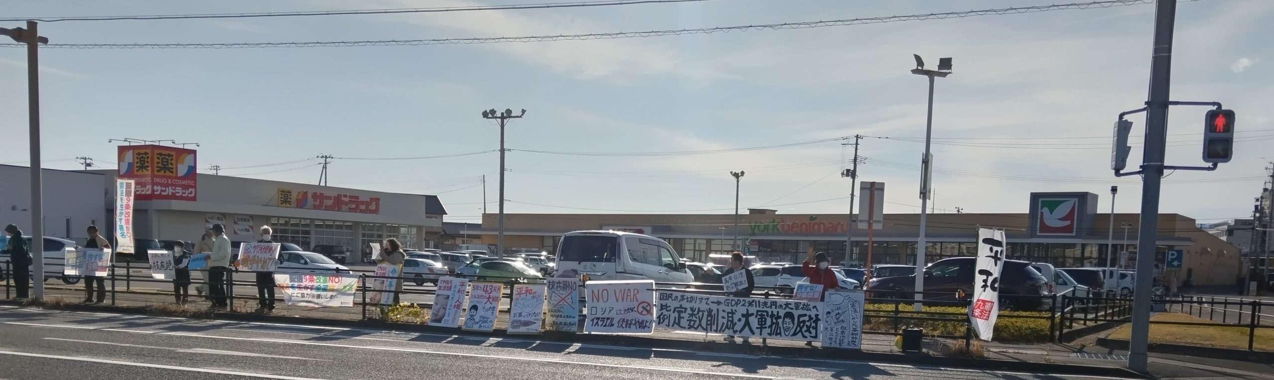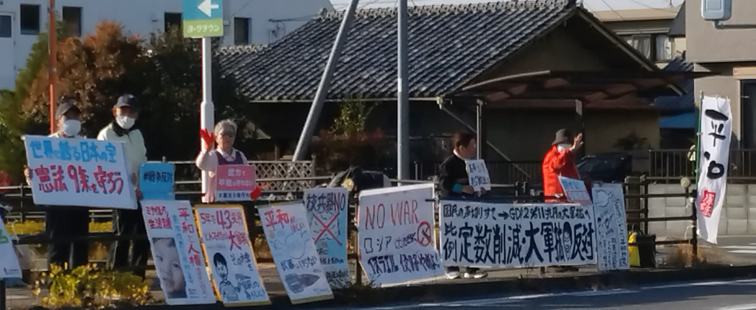 24日、憲法9条守れ共同センタースタンデングでした。初めてマイクを持ったKさん、朗読の名人Yさん等、5人が訴えました。