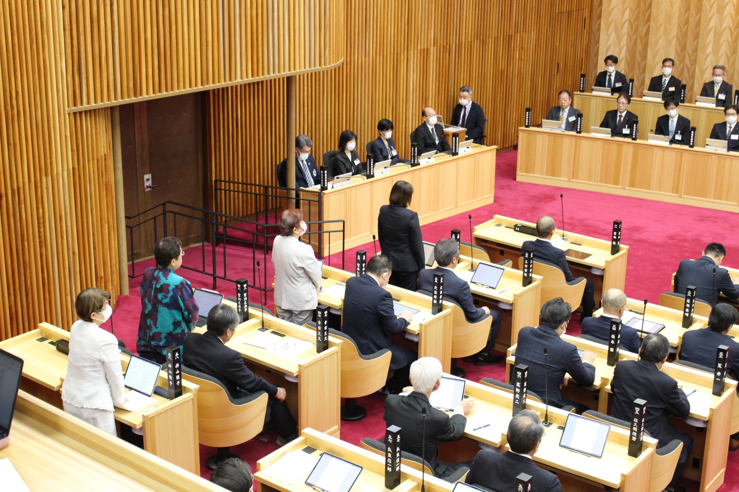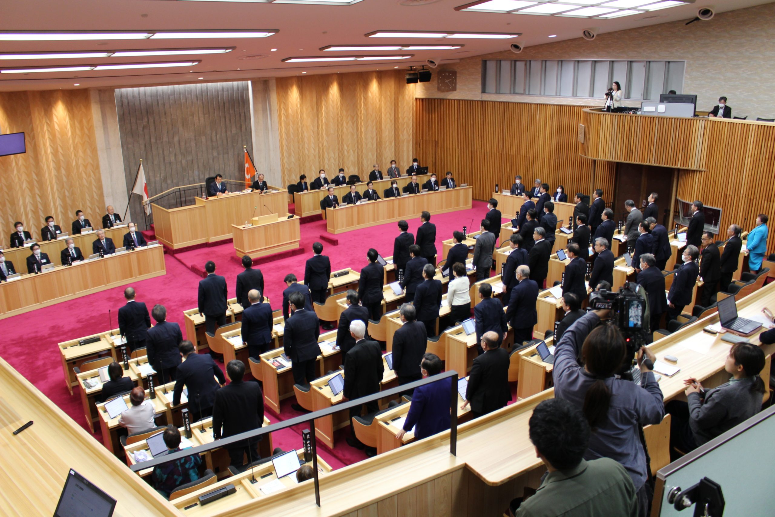 知事は、「日本国憲法に掲げられた国民主権、基本的人権の尊重、平和主義という3つの基本原則が国民の精神的支柱となり、平和を希求する国家として国際社会から信任を得たこと、さらには、豊かで住みよい社会の実現を願う国民のたゆまぬ努力によって、我が国における今日の平和と繁栄が築かれてきたものと認識しております」と答弁。