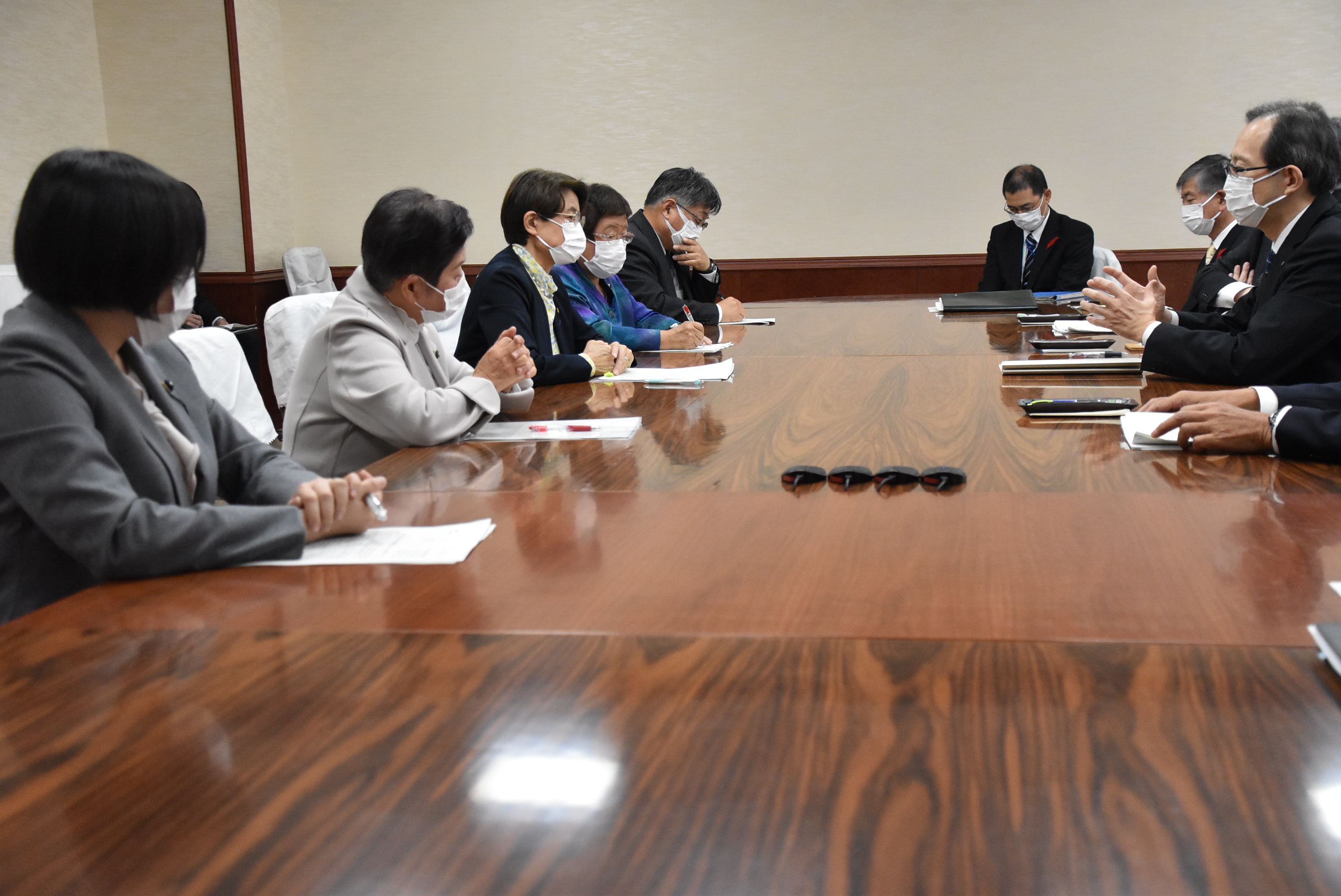 新型コロナ対策については、第6波への感染拡大対策を求め、3回目のコロナワクチンの市町村支援やインフルエンザワクチンの確保を要望。PCR検査や抗原定量検査を含めた検査の拡充、国民1人あたり10万円の特例給付金も事業者への持続化給付金も岸田政権の補正予算方針では限定的なため、対象拡大と期間延長を国に求めること。 日本の教育費は、OECD加盟国で最下位クラス。県も教育予算を大幅に増額し、少人数学級を小中高校まで実施すること。特別支援学校の増設を急ぐと共に、県立高校の前期・後期統廃合計画は中止し、教職員の定数増を求めました。 ジェンダー平等を県政のあらゆる分野で実施し、政策決定の場に女性の比率を引き上げることや女性幹部の登用、保健室でなく学校トイレに生理用品の配布も要望しました。