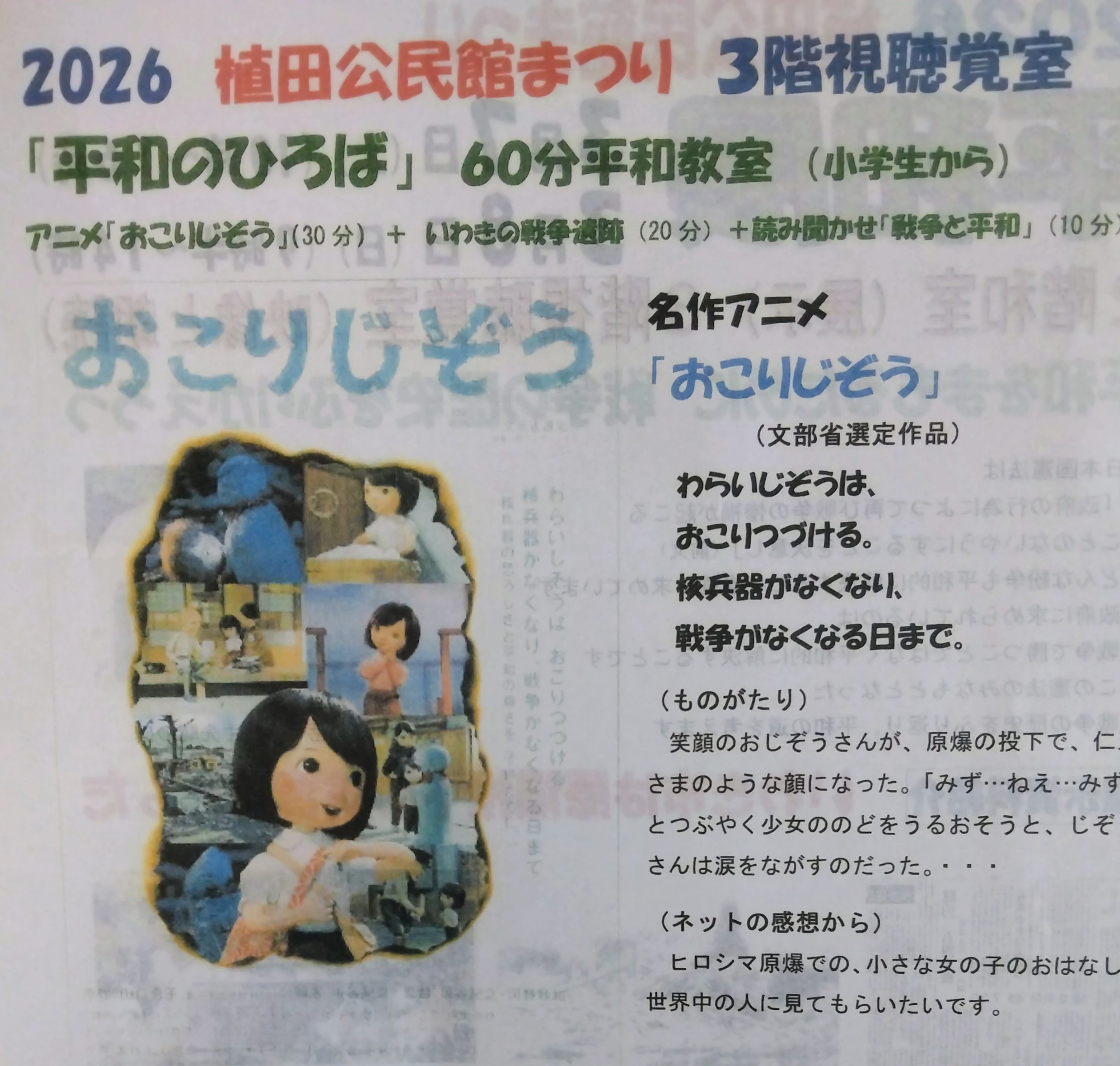平和展 おこり地蔵のアニメを見て来ました