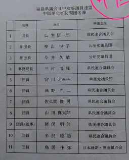 中国湖北省訪問・福島県議会日中友好議員連盟(1) 投稿日時: 2025年10月18日 投稿者: emiko.m 返信 10月13日~17日、超党派で作る日中友好議員連盟は、中国湖北省武漢市を訪問し交流親善を行いました。瓜生会長と湖北省人民代表大会常務委員会・陳小敏副代表らと。 参加メンバー DSC_1532 過去に行った時の資料。01年訪問時の写真。 DSC_1528