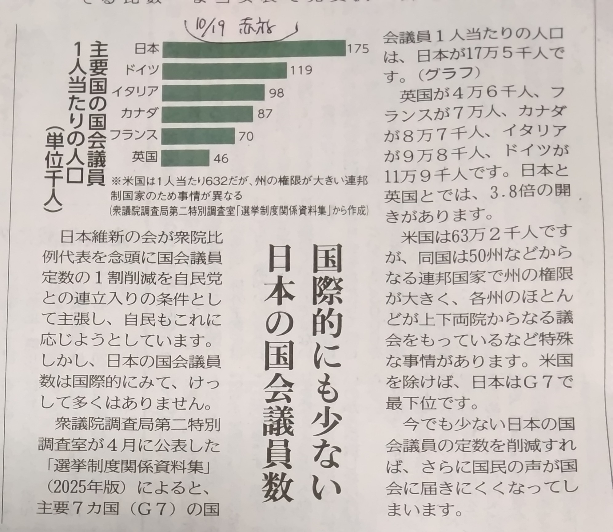 様々な国民の要望を届け、政策を拡充する上でも、巨大な行政機構のチェックでも、国民の代表として働く国会議員を減らすことは国民の不利益