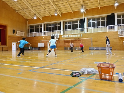 6日夜はバトミントン。上手なAさんに練習させてもらったら、あまりにも長く続きすぎて5分ではあ!はあ!