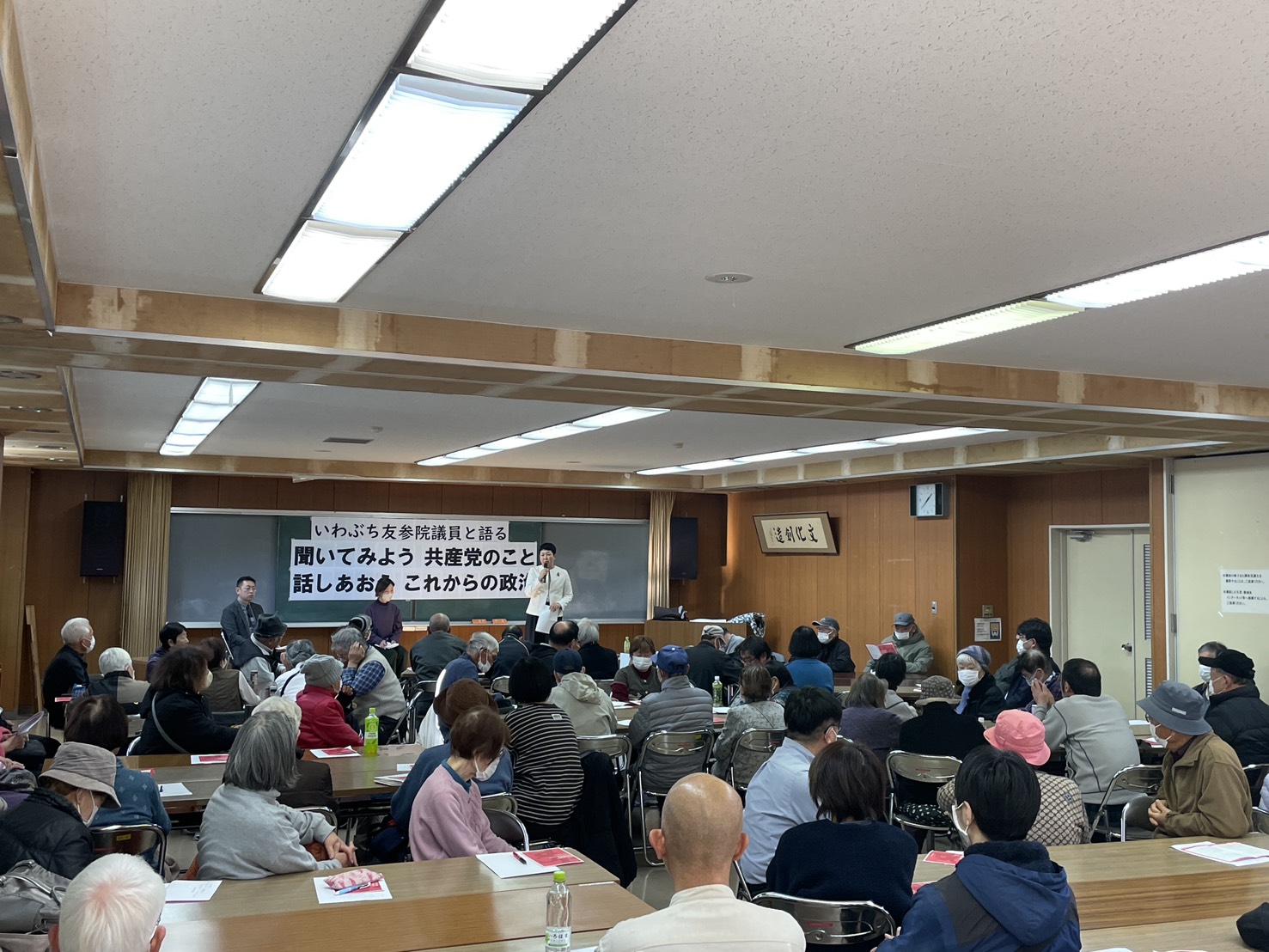 7日、岩渕参院議員を迎えて集い。国会報告を受け、熊谷地区委員長、Aさんと3人でトーク。会場からも質問を受け双方向に。共産党を強く大きくしてくださいと訴え。