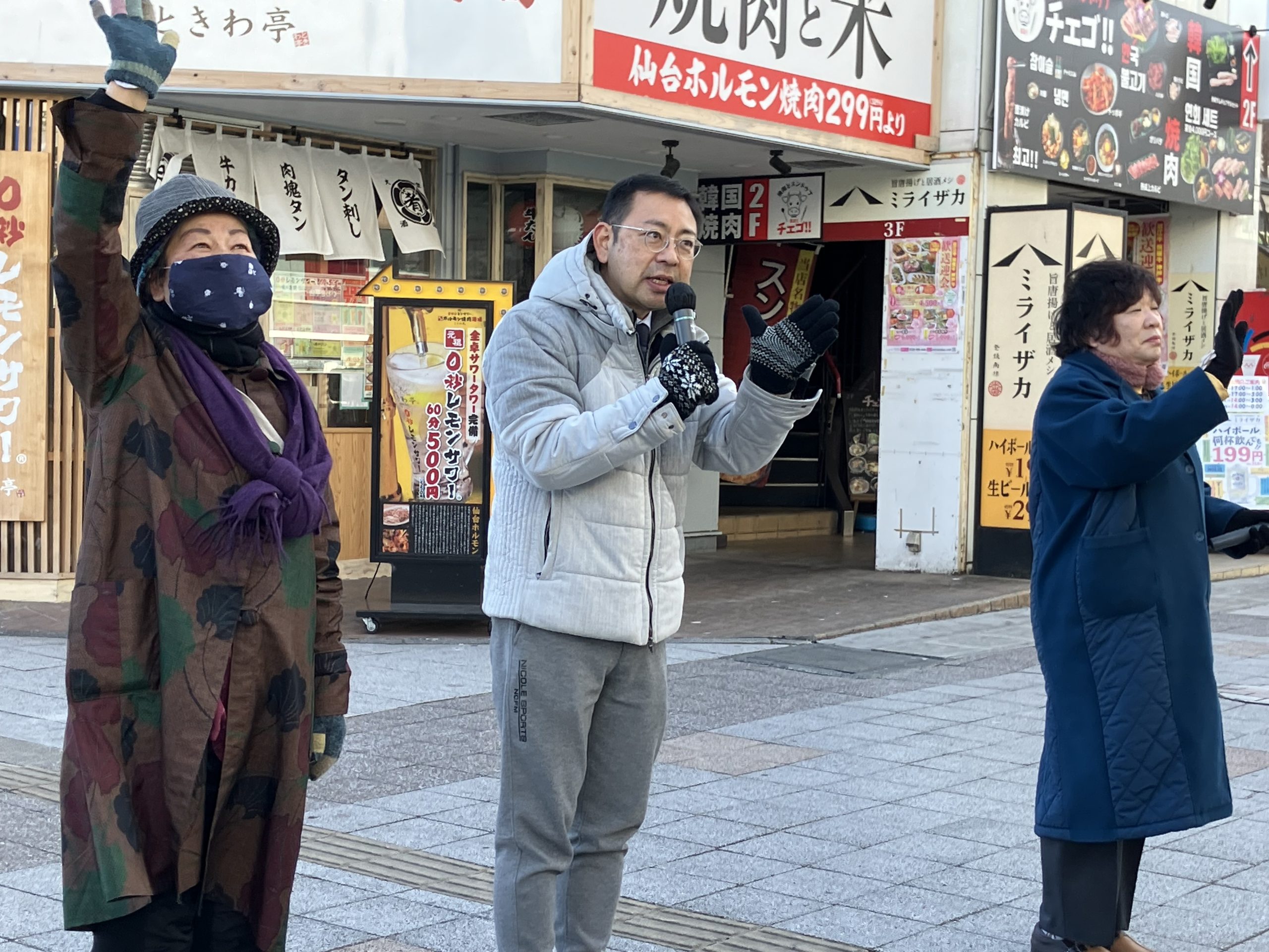 高市自民党政権が論戦を避け、中道が右に振れたことで争点と対決軸が見えにくい総選挙となったことがこの結果を招きました。それでも最終盤、高市氏の改憲発言を機に、反戦平和を求める声が広がり始めたことはこの国にとって希望です。ただ、それを日本共産党の支持に結びつけるには時間と自力が足りなかったかなと思います。ブレることなく自民党政治と対決する旗を掲げ、憲法を真ん中にした県民的共同をつくってまいります。ありがとうございました。(宮川は議会対策で福島います)