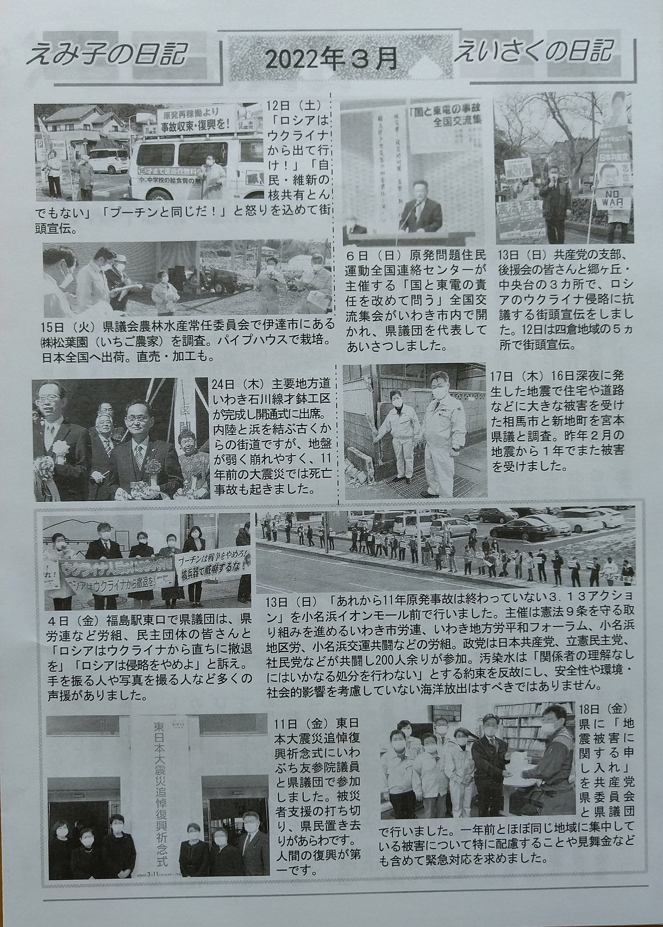 5日、同級生・大山登さんの写真展を見に行ってきました。感性のすばらしさ、作品を作り上げるための粘り強さ、それでいて人を楽しませる遊び心、とても素晴らしかったです。5月7日まで、いわき市錦町・喫茶店モナミにて。機会があったら是非ご覧ください。