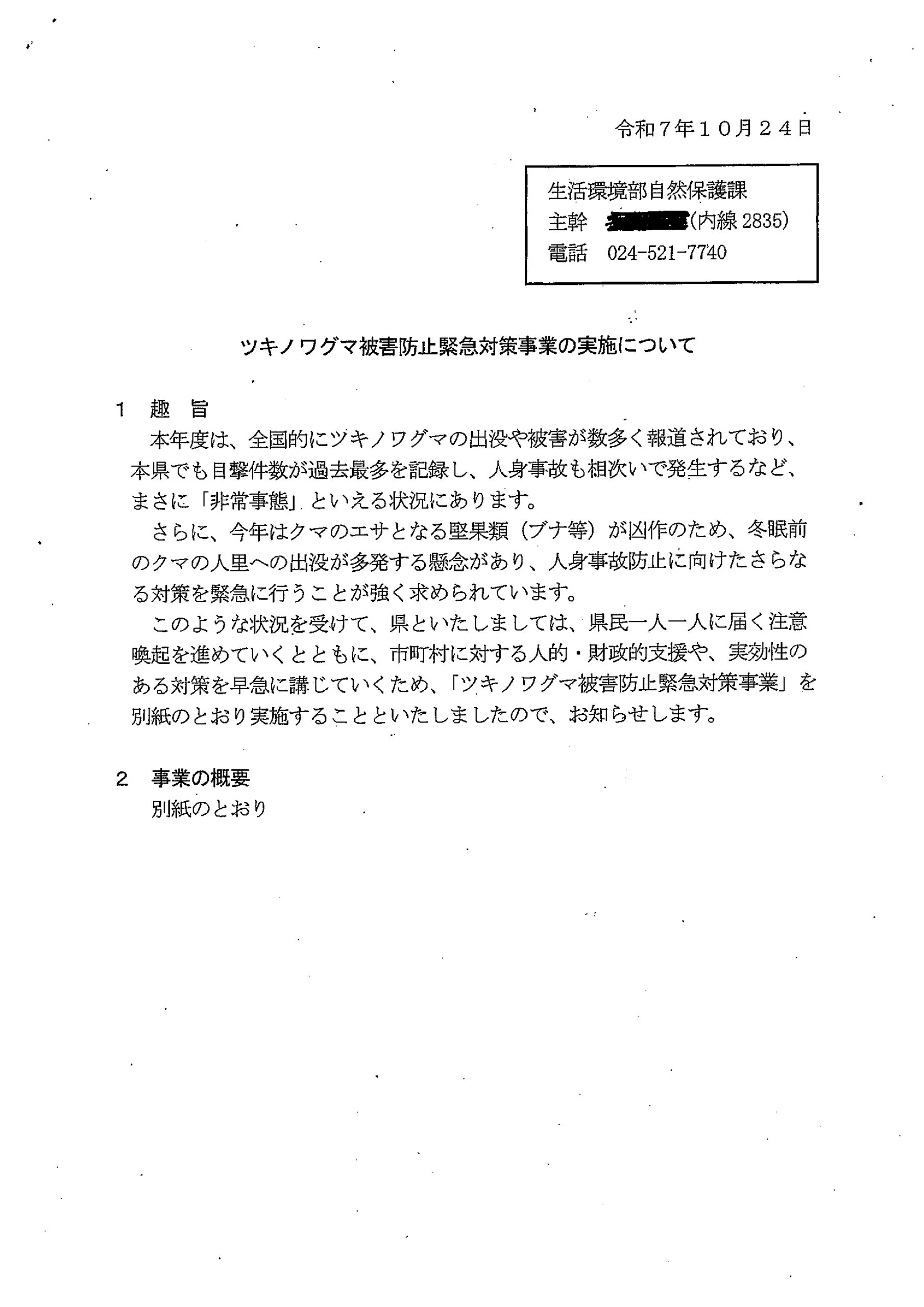 福島県【クマ被害防止対策として、県が緊急補正を組みます】