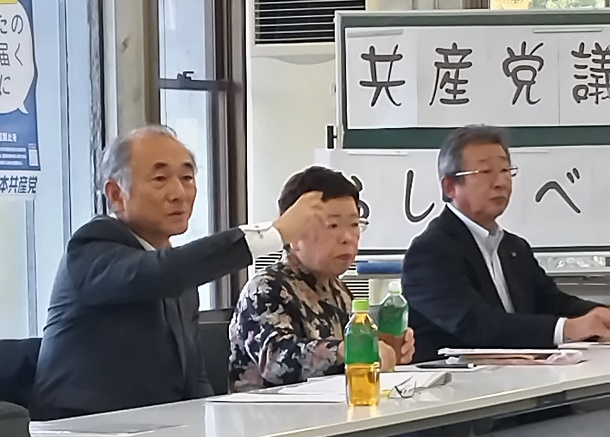 2日、常磐公民館の集いでした。日本共産党いわき双葉地区・熊谷智委員長、菅野・四家市議、私・県議宮川も。それぞれ議会報告後、小池書記局長の記者会見を視聴。