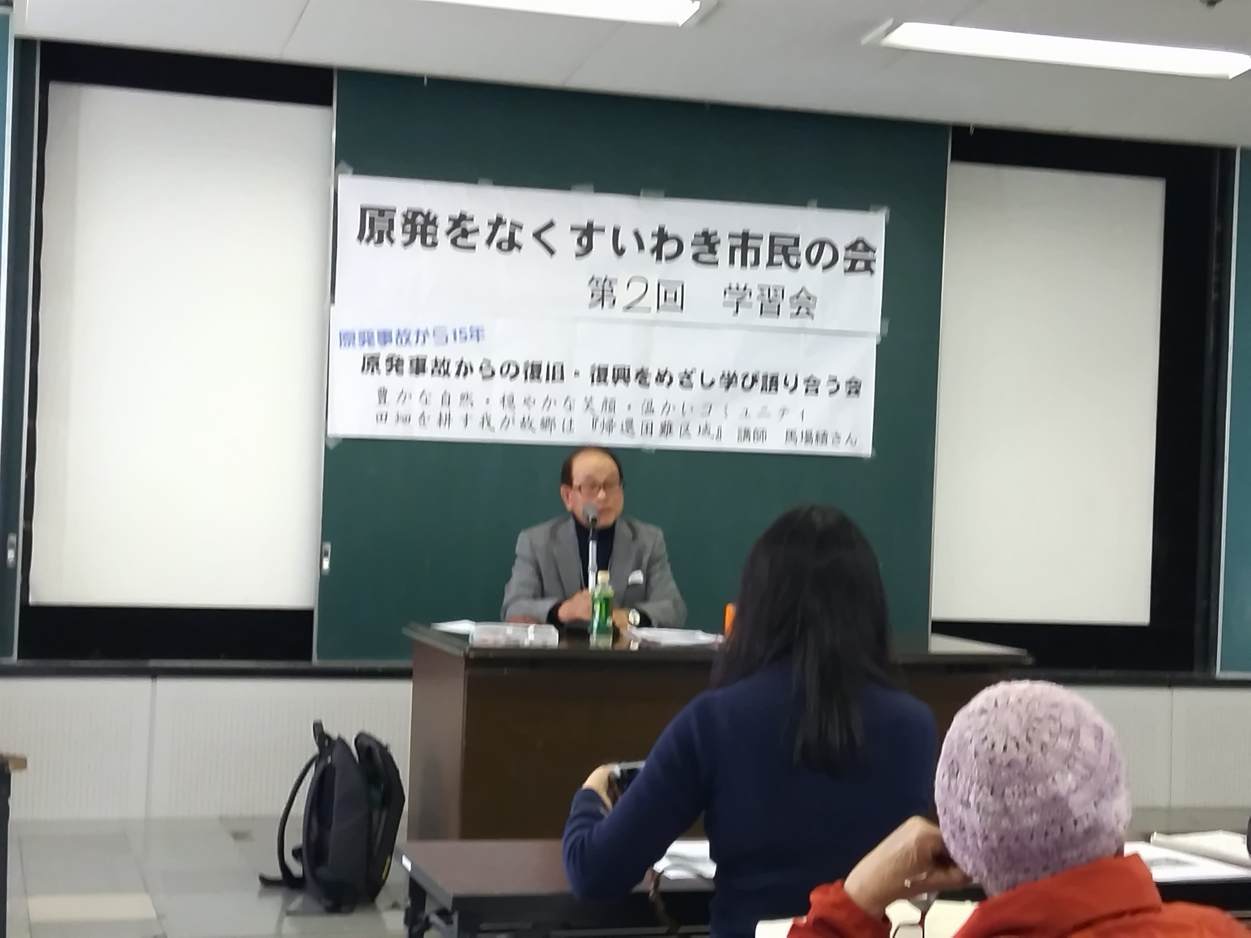 福島原発事故から15年、ふるさとを失った馬場さんの思いのたけ・・ 投稿日時: 2026年2月21日 投稿者: emiko.m 21日、いわき市文化センターで原発をなくすいわき市民の会、福島原発事故から15年、ふるさとを失った馬場さんの思いのたけ・・講演 DSC_2091