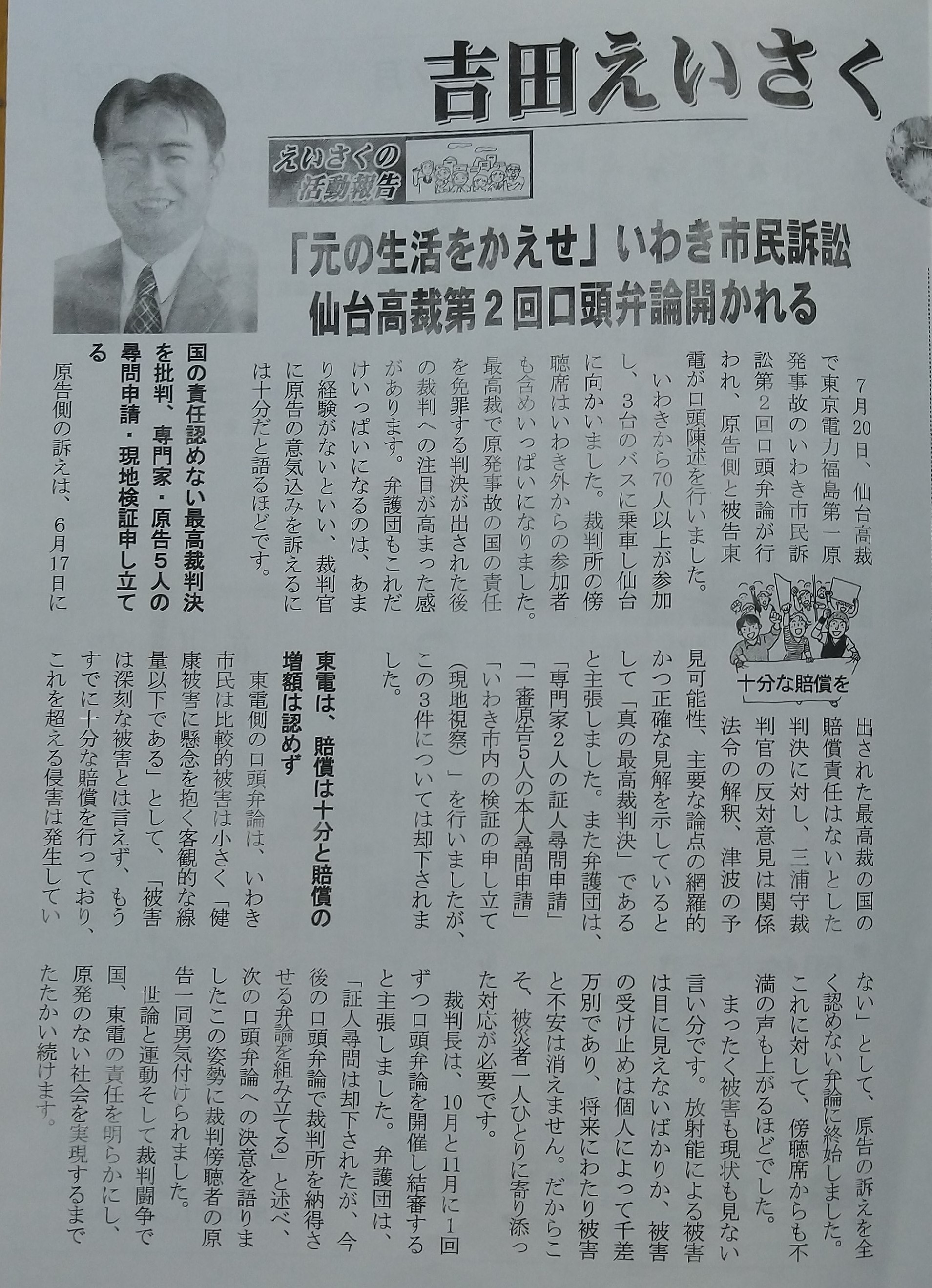 次のことについては、いわき建設事務所に行って話を聞き要望をしてくるので、後ほどお知らせします。①正式事業名②降水量の計算・どのくらいの雨に耐えられるか・どの辺が弱いとみられているか③改修期間③予算④堤防のかさ上げ計画⑤バイパス下流の土砂の今後の計画⑥2019年豪雨時の高柴ダムの役割⑦沼部の田んぼの溢れた遊水池の計画など。